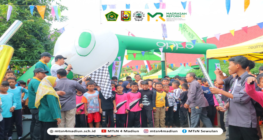 Madiun, 8 Februari 2024 - Puncak acara Show of Art and Creativity (Shortcity) Madsanema dilaksanakan hari Kamis, 8 Februari 2024 di halaman MTsN 4 Madiun. Kemeriahan puncak acara ini diisi dengan kegiatan launching mars MTsN 4 Madiun dan jalan santai moderasi beragama memperingati Isra Mikraj Nabi Muhammad SAW 1445 Hijriah. Kegiatan ini diikuti oleh seluruh siswa-siswi MTsN 4 Madiun, bapak-ibu guru karyawan MTsN 4 Madiun dan siswa-siswi SD/MI se-Kabupaten Madiun yang kemarin mengikuti rangkaian lomba Show of Art and Creativity (Shortcity) pada tanggal 4 Februari 2024.